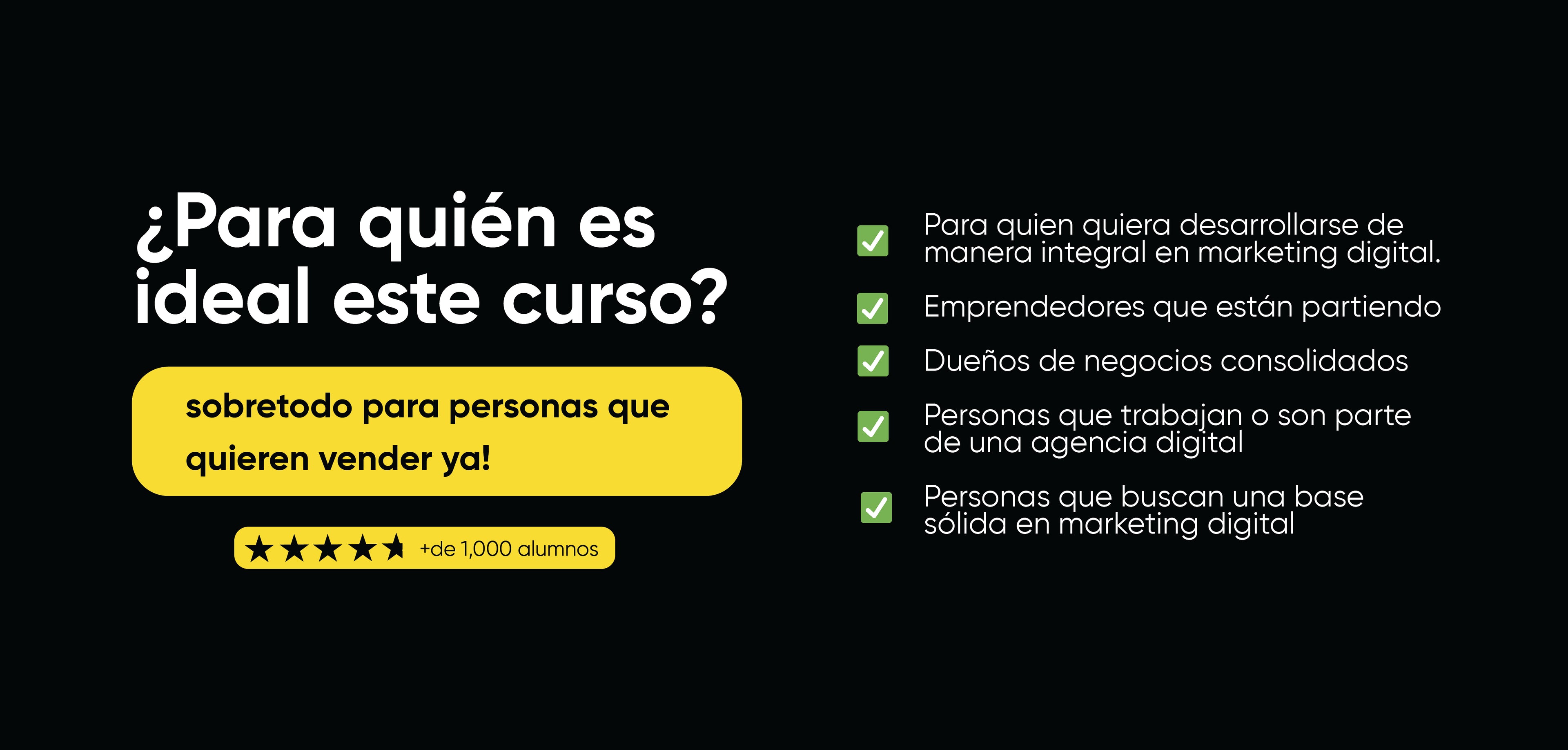 Si tienes un negocio te animamos a formar parte de este curso pues podrás tener un norte del marketing de tu negocio y comenzar a aplicar una estrategia bien fundamentada.